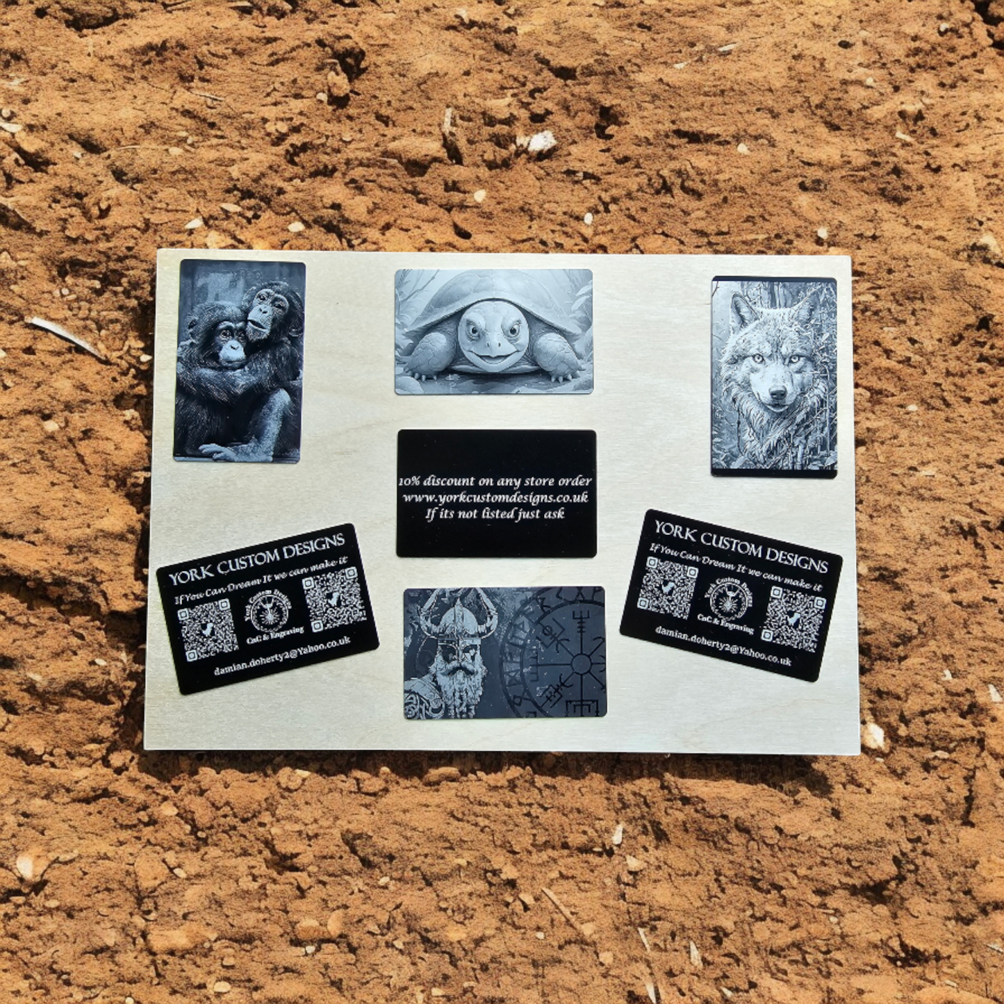 50 Metal aluminium business cards with qr codes or logos we can do metal wallet or photos.